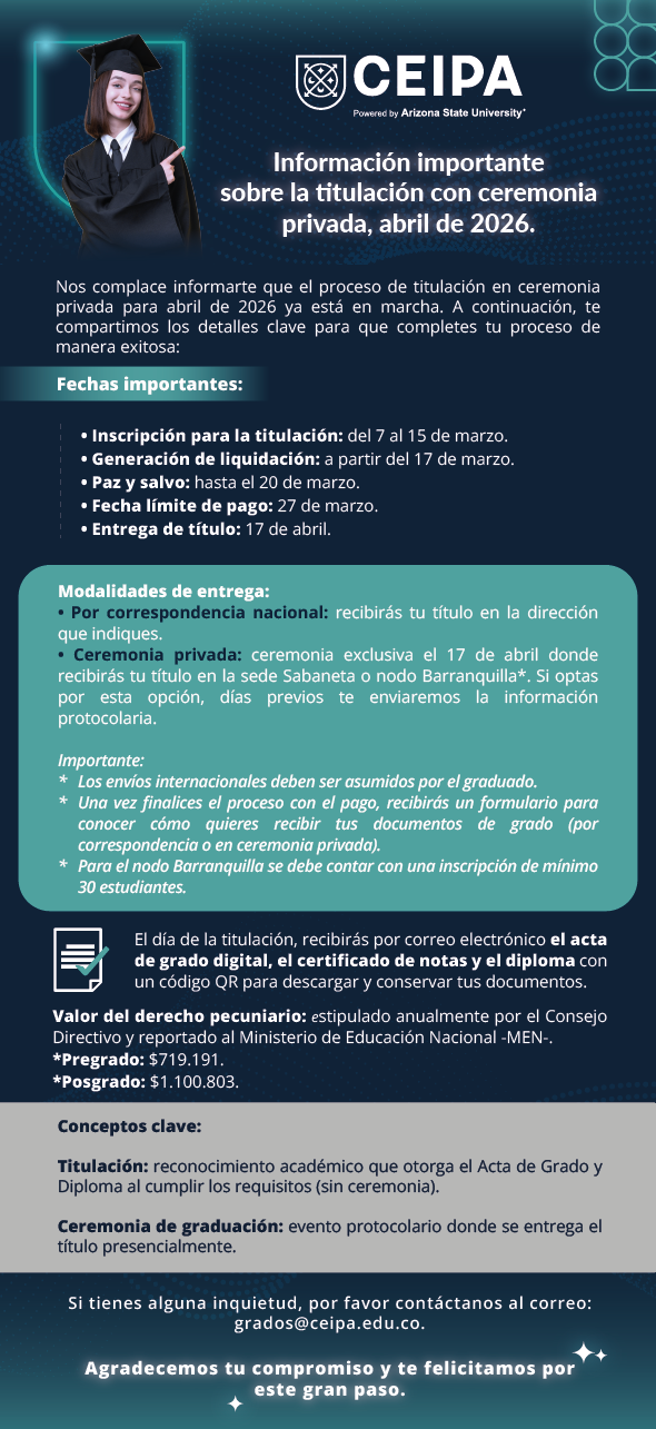 Sabemos lo importante que es este logro en tu vida, por eso te brindamos toda la información para que tu proceso de grado sea organizado y especial.